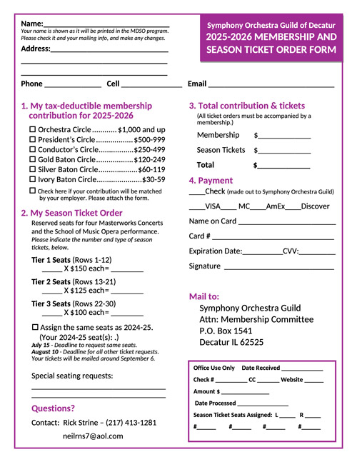 Memberships received before August 31, 2025 will be listed in the concert program.
